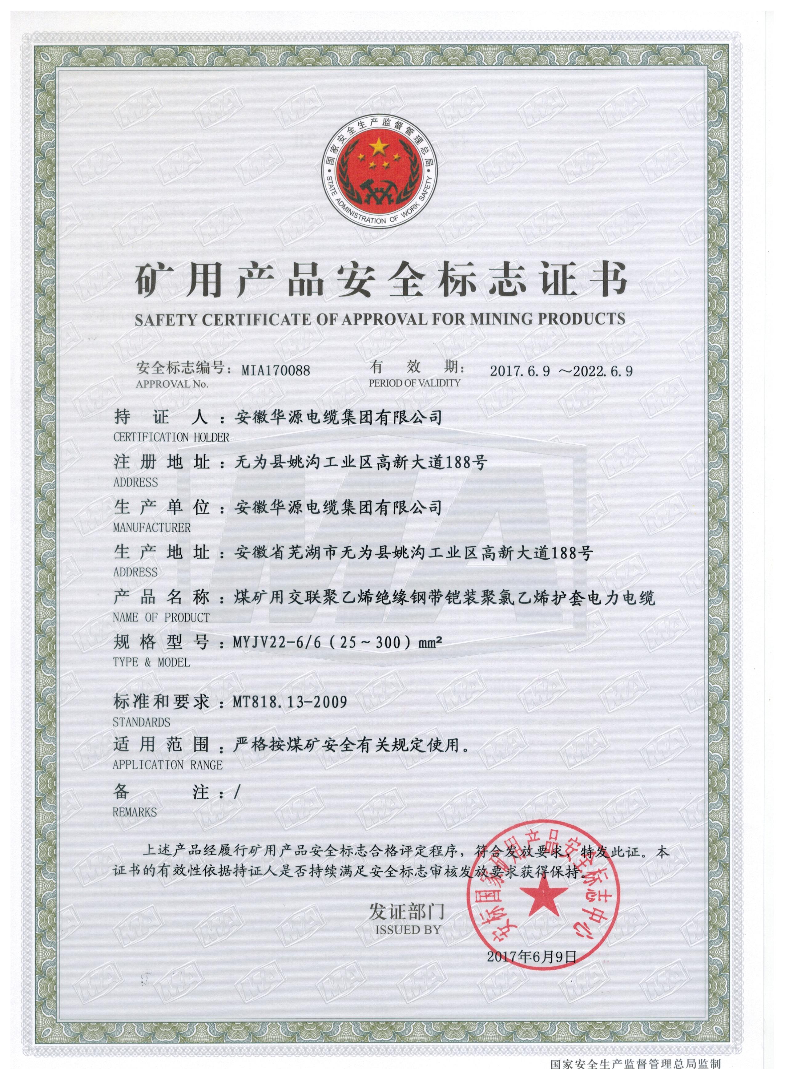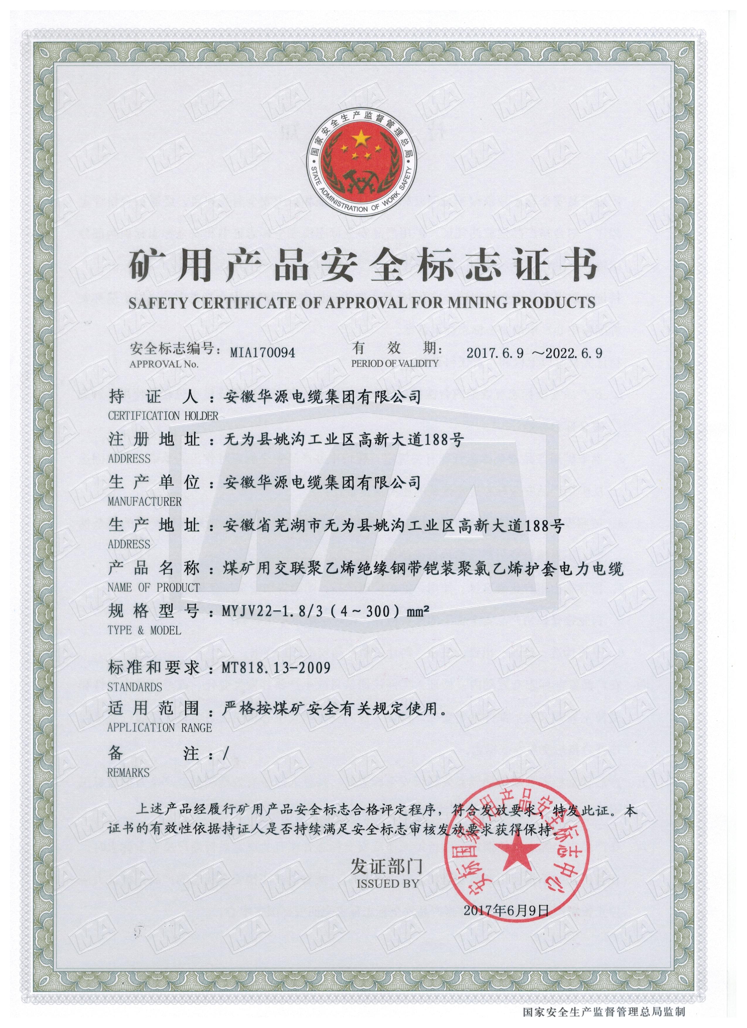 礦用產(chǎn)品安全標(biāo)志證書2017